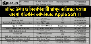 ৩. বিআইডব্লিউটিএ (BIWTA) ঠিকাদারি: ২০২৪ সালের এপ্রিল মাসে (সরকার পতনের মাত্র ৩ মাস আগে) বাংলাদেশ অভ্যন্তরীণ নৌ-পরিবহন কর্তৃপক্ষ (BIWTA)-এর একটি টেন্ডারে (টেন্ডার আইডি: 18.11.0000.311.14.135.2024/2216) ৩৬ লক্ষ ৪৬ হাজার টাকার পণ্য সরবরাহের কাজ পায় অ্যাপল সফট আইটি। প্রশ্ন উঠেছে, একটি সফটওয়্যার কোম্পানি কীভাবে পণ্য সরবরাহের (Goods) কাজ পায়?